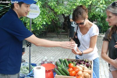 Instead of purchasing tickets, those who come to mingle with other food enthusiasts and sample the market's Thai and International delectables, are encouraged to make a donation to charity. In addition to the free big bites from each of the food producers, market goers can also purchase larger servings to eat or take home.