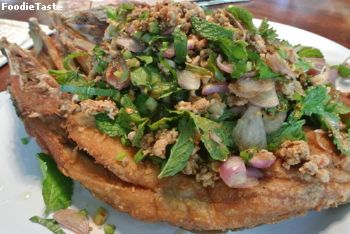 ปลากระพงทอดราดน้ำตก