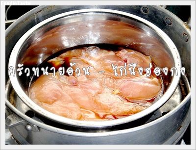 2. นำไปนึ่งไฟแรงจนกว่าจะสุก พักไว้สักครู่ หั่นเป็นชิ้นใหญ่ๆ โรยขิงซอย พริกเผาฮ่องกง