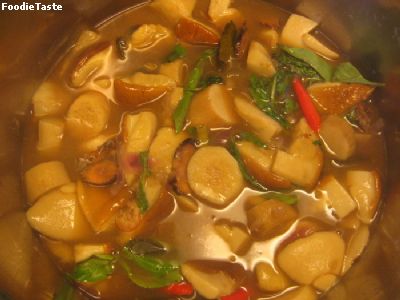 หาอาหารไฮโซ มาลงกับเขาบ้างดีกว่า อิอิ... เดี๋ยวคนจะหาว่าเราทำไม่เป็น ไปหาเก็บเห็ดในป่าสวีเดนมาค่ะ ได้เห็ดที่สวีเดนเรียกว่า karl johan รสชาติคล้ายๆ เห็ดผึ้งบ้านเราค่ะ ล้างเห็ดให้สะอาด หั่นพอคำ ตั้งหม้อใส่น้ำ ตำตะไคร้ หัวหอมแดง พริกสด แล้วใส่ลงหม้อ ใส่มะขามเปียก หั่นข่าใส่ไปด้วย พอเดือด ใส่เห็ด ใส่กุ้งแห้ง ปล่อยเดือดอีกที ปรุงรสด้วยน้ำปลา น้ำปลาร้า เกลือ ผงชูรส ใบมะกรูด ชิมรส ใส่ใบแมงลัก ยกหม้อออกจากเตา ทานร้อนๆ ได้เลยค่ะ