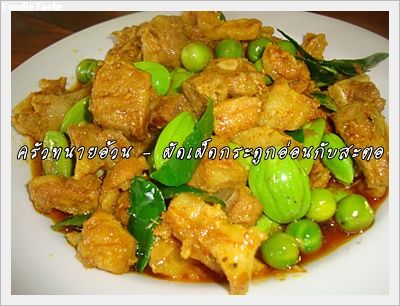 ของชอบเลยครับ สูตรอาหารอันนี้ หรอยจังหู้ สะตอเม็ดเป้งๆๆ เอ่อแล้วสะตอมันมีเยอะหน้าไหนครับ ใครรู้บ้างคร้าบบบ อาหารจานนี้ไม่รู้มันจะเค้ยวสนุกกรุบกรอบขนาดไหน มีทั้งกระดูกหมูอ่อน และสะตอ แอบใส่ขมิ้นขาวลงไปด้วย ยังพอไหวไหมครับ ทนายอ้วน