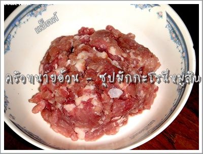 4. ปั้นหมูเป็นก้อนๆ ขนาดเท่าปลายนิ้วใส่ลงไป รอจนหมูสุก ใส่หอมใหญ่ รอสุกหอมใหญ่สุกใส ใส่มักกะโรนีที่ต้มแล้วลงไป