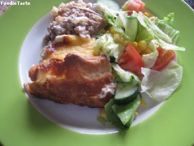 เข้าเตาอบ ไฟ 200 องศาเซลเซียส นาน 30 นาที เสิร์ฟกับผักสด