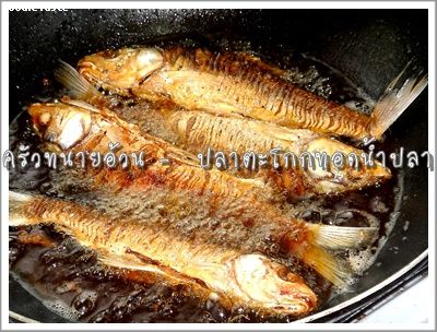 1. ตั้งน้ำมันเยอะๆให้ร้อนจัด นำปลาลงทอดสักพัก แล้วหรี่ไฟเป็นไฟกลางค่อนข้างแรง ทอดปลาไปเรื่อยๆจนสุกเหลือง กรอบทั้งสองด้าน