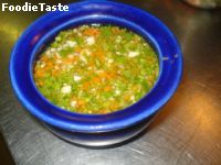 6. น้ำจิ้ม นำกระเทียม 5 กลีบใส่ลงครกตำให้ละเอียดตามด้วยพริกแดง 10 เม็ดโคลกให้ละเอียด ตักขึ้นใส่ถ้วยให้บีบมะนาว 3 ลูกใส่ก่อนจะทำให้น้ำจิ้มนั้นไม่ดำ แล้วจึงตามด้วยน้ำปลา 3-4 ช้อนโต๊ะ ใส่น้ำตาลนิดหน่อยแต่ไม่ควรหวาน คนให้เข้ากันและชิมรสโดยให้รสเปรี้ยวนำ