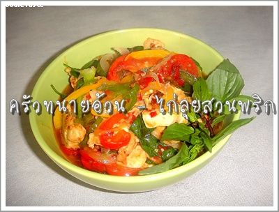 1. ตั้งกระทะให้ร้อน ใส่น้ำมันลงไปเล็กน้อย ใส่พริกขี้หนูกับกระเทียมตำรวมกันลงไปผัดจนหอม ใส่เนื้ออกไก่ลงไปผัดจนสุก