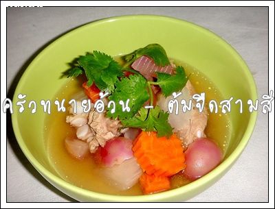 1. ใส่พริกไทยเม็ด กระเทียม รากผักชี กระดูกหมู ลงในหม้อ เติมน้ำลงไปจนท่วมกระดูดหมูแล้วเคี่ยวบนไฟอ่อนจนกว่ากระดูกหมูเริ่มจะเปื่อย