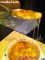 5 หั่นขนมปังฝรั่งเศส แล้วทาเนียเข้าเตาอบ ที่ ไฟ 200 องศาประมาณ 5 นาที จนเห็นสีสวยแล้วนำออกมาวางบนซุปที่เราใส่ถ้วยไว้