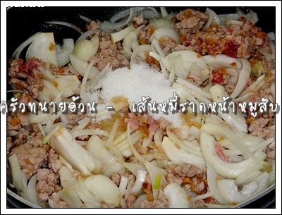 3. ใส่หอมใหญ่ ผัดจนหอมใหญ่สุก ใส ตามด้วยมะเขือเทศ ปรุงรสด้วยน้ำปลา น้ำตาล ซอสปรุงรส ผัดให้เข้ากัน