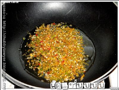 Preheat and lightly greased to wok with vegetable oil, add pounded together bird eye chilies and garlic to stir fry over medium heat until aroma and add tofu to tri fry until cooked through.