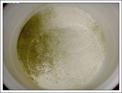 2. ร่อนแป้งพัดโบก ผงชาเขียว ผงฟู วนิลลาผง 1 ครั้ง พักไว้
