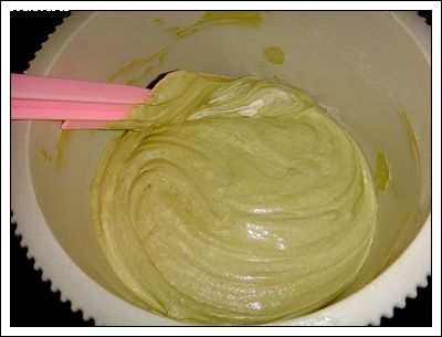 Sift flour, green tea powder, salt and baking soda once and set aside.