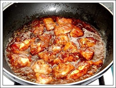 Fill the wok with water until pork spare ribs are submerged. Simmer over the lowest heat until water evaporated or pork spare ribs are soft and tender. Turn the heat off.