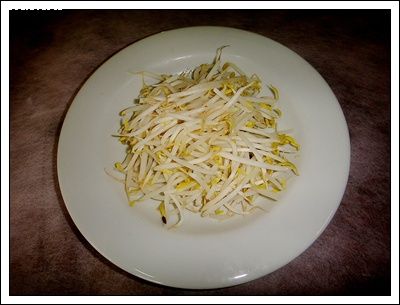 In the microwave prove container, place bean sprout and use microwave on high level of power to cook for 1 minute.