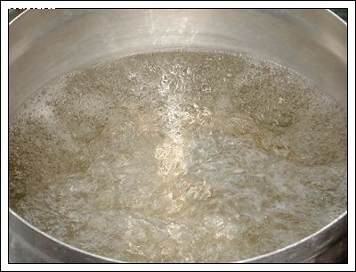 2. ตั้งน้ำครึ่งหม้อ รอให้เดือด พอเดือดใส่กระดูกหมูลงไป รอประมาณ 5 นาที กรองเอาแต่กระดูกหมู