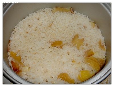 4. ถ่ายลงหม้อหุงข้าวไฟฟ้า เติมน้ำเปล่าประมาณ 500 มิลลิลิตร หุงด้วยวิธีปกติ