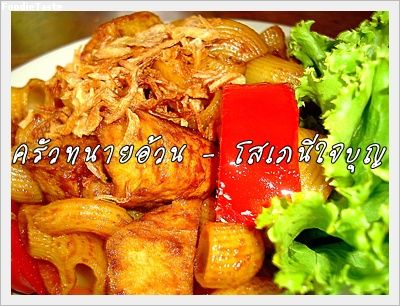 2.ปรุงรสด้วย น้ำตาล ซีอิ๊วขาว ใส่มักกะโรนีลงผัดพอเข้ากัน ใส่ผงกระหรี่ลงไปผัดให้หอม