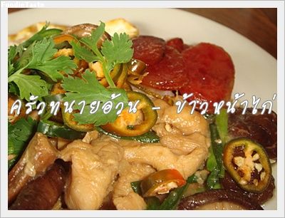 2. นำไก่ที่หมักเอาไว้ลงผัดน้ำมันที่ตั้งไฟไม่ร้อนมาก ผัดบนไฟกลางจนหอมจนไก่สุก ใส่เห็ดหอม